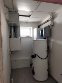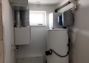 Kúrenie: v celom dome teplovodné podlahové na tepelné čerpadlo, rekuperácia, stropné chladenie. Dom je zateplený 20 cm polystyrénom (EPS 80 F), strop je zateplený 60 cm fúkanou izoláciou ISOVER.