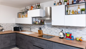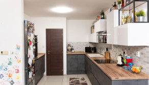 Byt pozostáva z kuchyni s modernou kuchynskou linkou so vstavanými spotrebičmi. Elektrická rúra, indukčná varná doska,, chladnička s mrazničkou, mikrovlnná rúra.