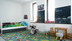 Byt má 3 obytné miestnosti. Veľká obývacia miestnosť, detská izba a spálňa.